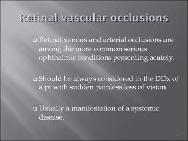 Retinal vascular occlusions PowerPoint PPT Presentation