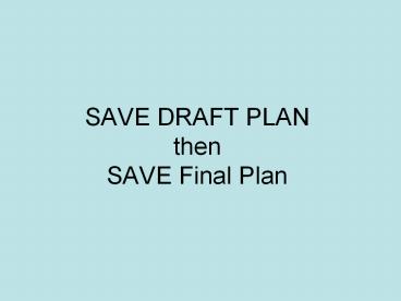 SAVE DRAFT PLAN then SAVE Final Plan PowerPoint PPT Presentation