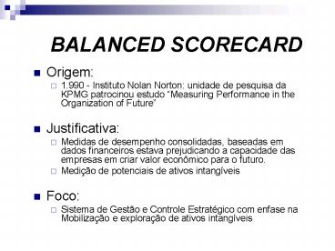 BALANCED SCORECARD PowerPoint PPT Presentation