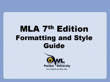 <Notice: Removed> MLA 7th Edition Formatting and Style Guide PowerPoint PPT Presentation