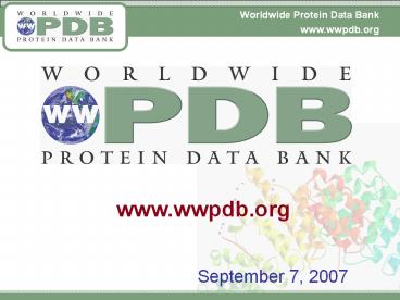 - The worldwide Protein Data Bank (wwPDB) ensuring