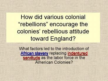 sponsored to come to America. - Indentured Contract Served plantation owner for