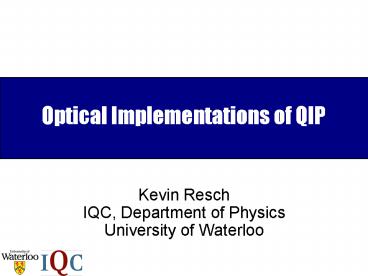 <Notice: Removed> Optical Implementations of QIP PowerPoint PPT Presentation