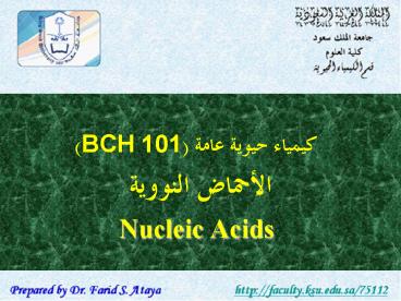 Title: ?????? ????? ???? (BCH 101) ??????? ??????? Nucleic Acids