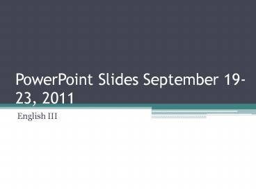 <Notice: Removed> PowerPoint Slides September 19-23, 2011 PowerPoint PPT Presentation