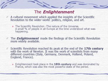 Poland, England, France). - Enlightenment took place in the 18th century and