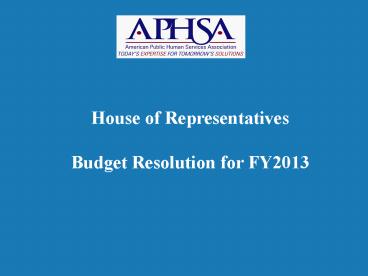 <Notice: Removed> House of Representatives Budget Resolution for FY2013 PowerPoint PPT Presentation