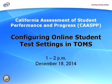 <Notice: Removed> CAASPP: Configuring Online Student Test Settings in TOMS Webcast PowerPoint PPT Presentation