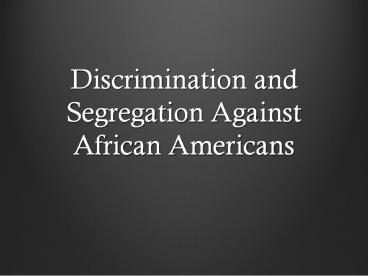 <Notice: Removed> Discrimination and Segregation Against African Americans PowerPoint PPT Presentation