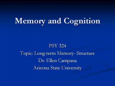 <Notice: Removed> Memory and Cognition PowerPoint PPT Presentation