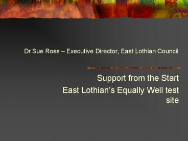 Dr Sue Ross Executive Director, East Lothian Council Support from the Start East Lothian s Equally Well test site East Lothian One of 32 Scottish Unitary ... – PowerPoint PPT presentation