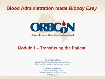 <Notice: Removed> Blood Administration made Bloody Easy Module 1 PowerPoint PPT Presentation