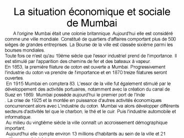 1La situation économique et sociale de Mumbai