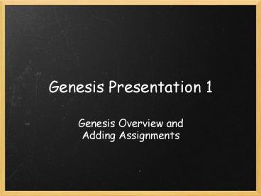 - Genesis Overview and Adding Assignments
