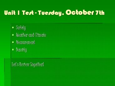 Title: Unit 1 Test - Tuesday, October 7th