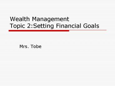 Title: Wealth Management Topic 2:Setting Financial Goals