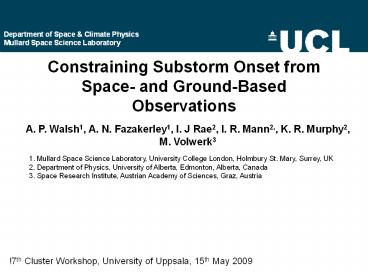 Title: Constraining Substorm Onset from Space- and Ground-Based Observations