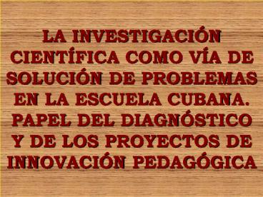 1LA INVESTIGACIÓN CIENTÍFICA COMO VÍA DE SOLUCIÓN