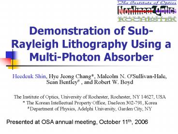 Title: Demonstration of Sub-Rayleigh Lithography Using a Multi-Photon Absorber