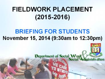 <Notice: Removed> FIELDWORK PLACEMENT (2015-2016) PowerPoint PPT Presentation