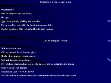 1Directions to create Jeopardy Game Open