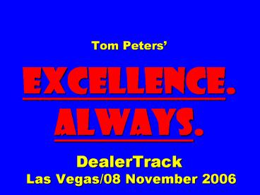 1 Tom PetersEXCELLENCE. ALWAYS.DealerTrack