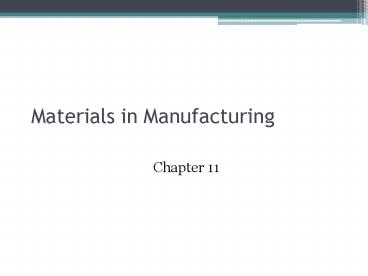 <Notice: Removed> Materials in Manufacturing PowerPoint PPT Presentation