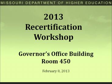 <Notice: Removed> 2013 Recertification Workshop PowerPoint PPT Presentation