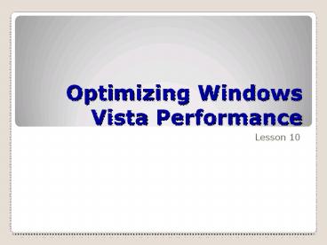 <Notice: Removed> Optimizing Windows Vista Performance PowerPoint PPT Presentation
