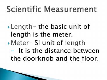 Title: Length- the basic unit of length is the meter.