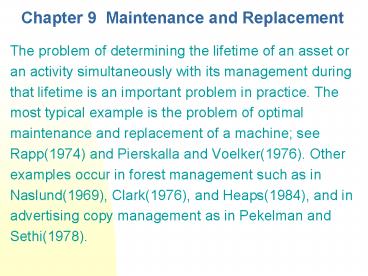 <Notice: Removed> Chapter 9 Maintenance and Replacement PowerPoint PPT Presentation
