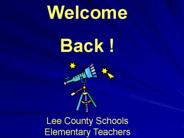 Welcome Back ! Lee County Schools Elementary