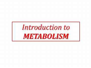 <Notice: Removed> Introduction to METABOLISM PowerPoint PPT Presentation