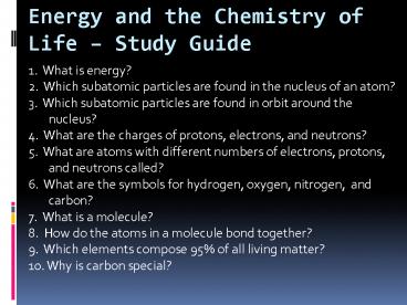 Energy and the Chemistry of Life PowerPoint PPT Presentation