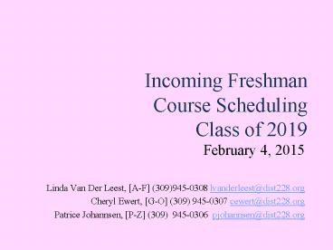 1Incoming Freshman Course SchedulingClass of 2019