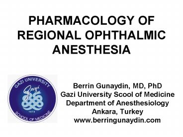 Title: PHARMACOLOGY OF REGIONAL OPHTHALMIC ANESTHESIA