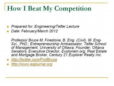 <Notice: Removed> How I Beat My Competition PowerPoint PPT Presentation