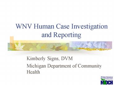 <Notice: Removed> WNV Human Case Investigation and Reporting PowerPoint PPT Presentation
