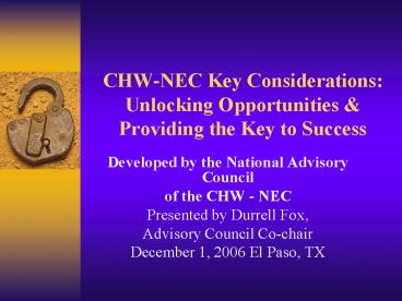 CHW-NEC Key Considerations: Unlocking Opportunities PowerPoint PPT Presentation