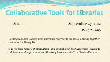 <Notice: Removed> Collaborative Tools for Libraries PowerPoint PPT Presentation