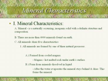 - I. Mineral Characteristics
