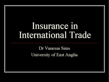 Insurance in International Trade PowerPoint PPT Presentation