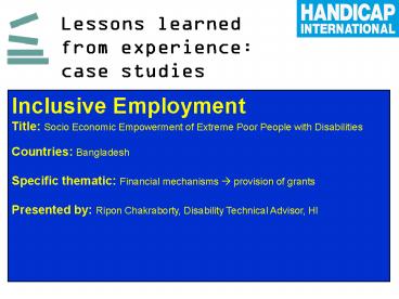 Lessons learned from experience: case studies - PowerPoint PPT Presentation