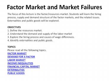 topics. FACTOR MARKET DEMAND FOR A FACTOR LABOR