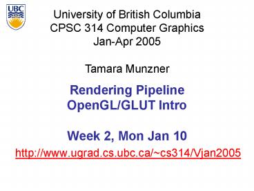 1Rendering PipelineOpenGL/GLUT IntroWeek 2, Mon