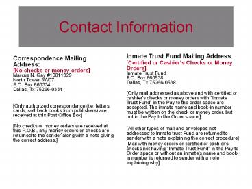 Inmate Trust Fund Mailing AddressCertified or