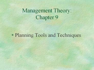 Management Theory: Chapter 9 PowerPoint PPT Presentation