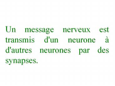 Un message nerveux est transmis d'un neurone PowerPoint PPT Presentation
