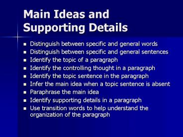 <Notice: Removed> Main Ideas and Supporting Details PowerPoint PPT Presentation
