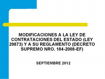 <Notice: Removed> MODIFICACIONES A LA LEY DE CONTRATACIONES DEL ESTADO (LEY 29873) Y A SU REGLAMENTO (DECRETO SUPREMO NRO. 184-2008-EF) PowerPoint PPT Presentation